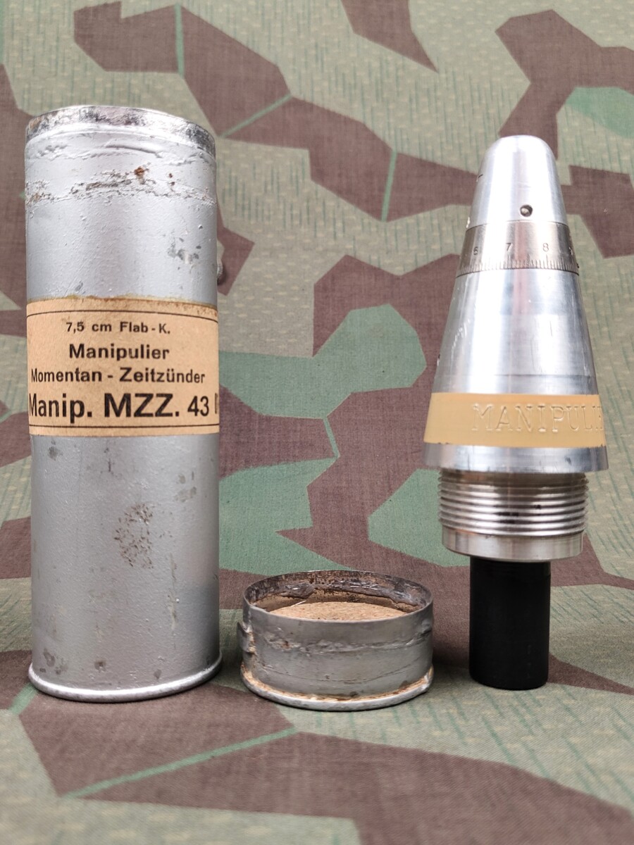 Aufschrift: 7,5 cm Flab – K. Manipulier Momentan – Zeitzünder Manip. MZZ. 43 01-55G