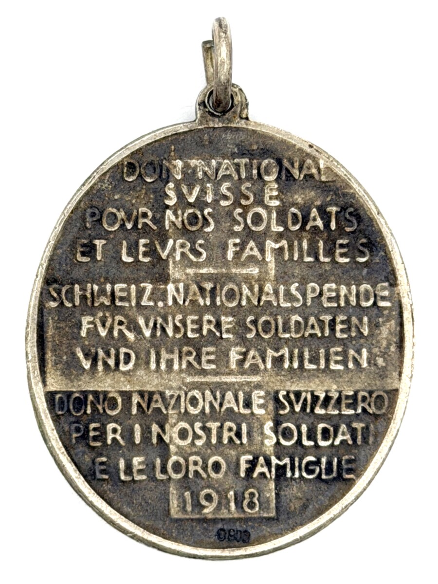 Aufschrift: DON NATIONAL SUISSE POUR NOS SOLDATS ET LEURS FAMILLES SCHWEIZ. NATIONALSPENDE FÜR UNSERE SOLDATEN UND IHRE FAMILIEN DONO NAZIONALE SVIZZERO PER I NOSTRI SOLDATI E LE LORO FAMIGLIE 1918