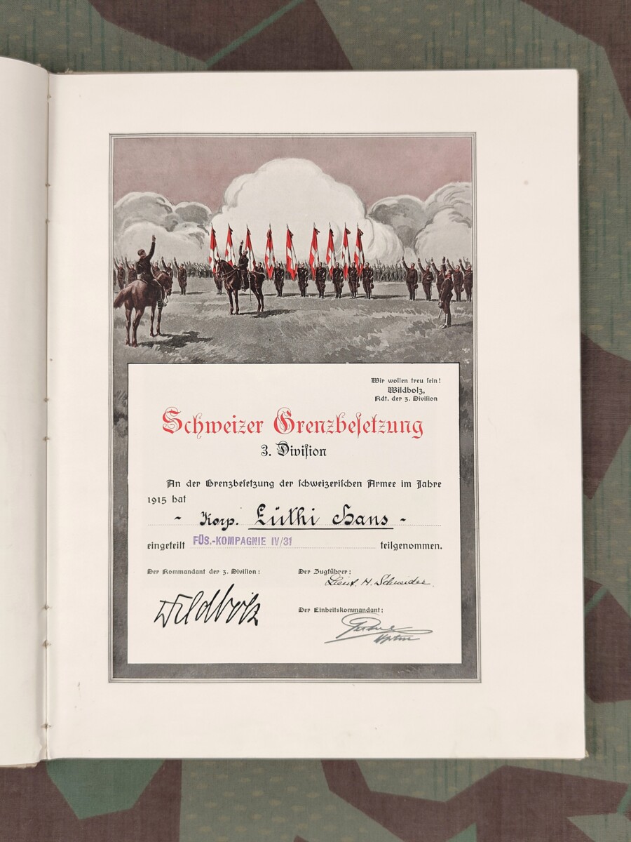 Das Album ist signiert und gehörte Korporal Lüthi Hans, welcher im Füs Bat 31 Kp 4 eingeteilt war.