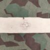 Sie wird mittels drei Haften an Stofflaschen fixiert. Es sind zwei Reihen Stofflaschen vorhanden, um die Grösse einstellen zu können, damit die Armbinde auch auf den Kaput passt.