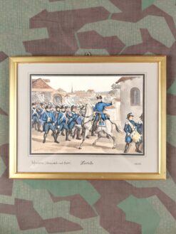 Dieses Bild ist aus der Aquarell-Serie von Albert von Escher mit dem Titel «Die schweizerischen Milizen des 19. Jahrhunderts». Das Bild ist hinter Glas gerahmt.