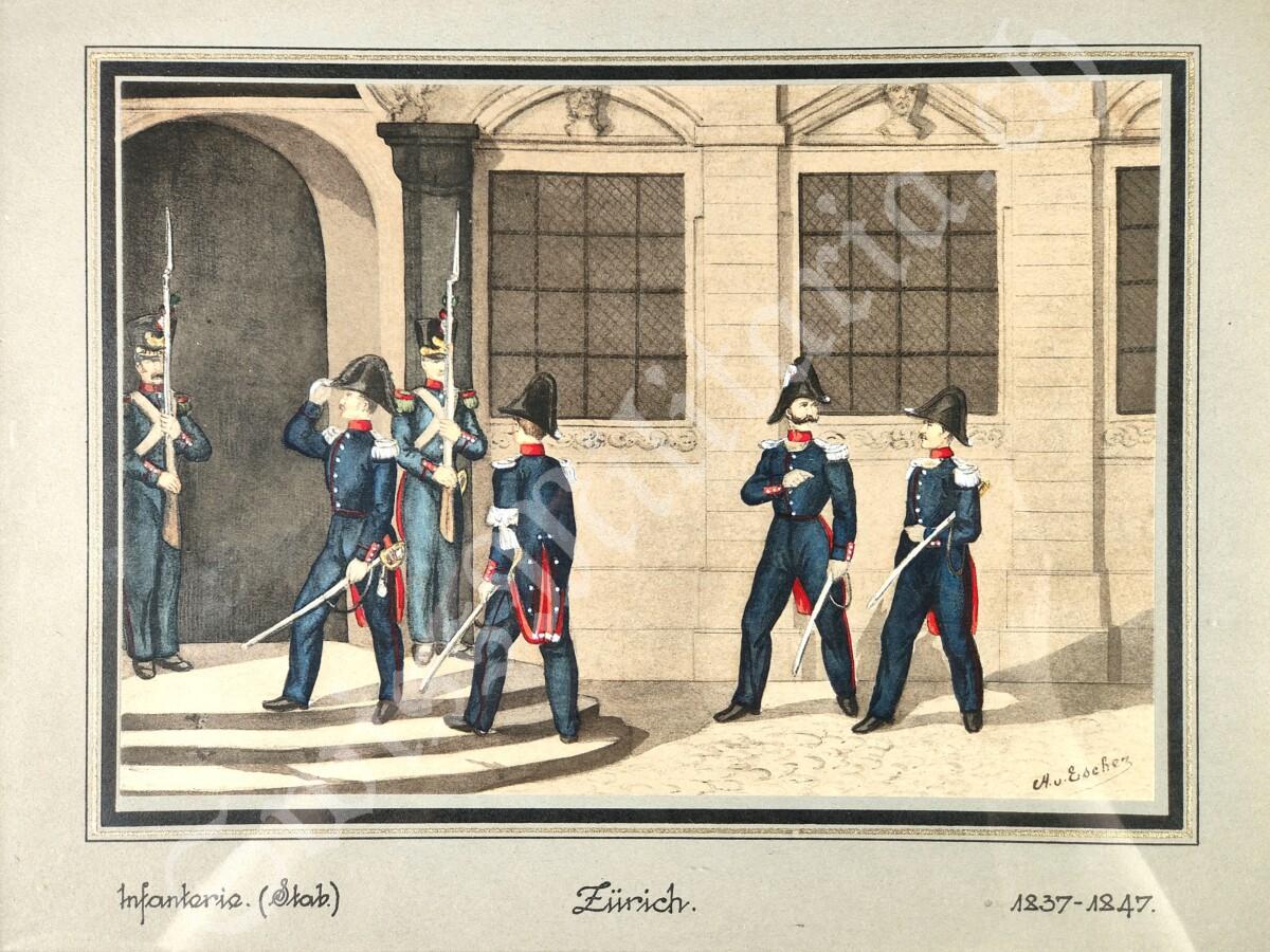 Schlagwörter: 1837, 1847, Albert von Escher, Bild, Infanterie, Stab, Zürich