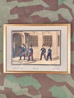 Dieses Bild ist aus der Aquarell-Serie von Albert von Escher mit dem Titel «Die schweizerischen Milizen des 19. Jahrhunderts». Das Bild ist hinter Glas gerahmt.