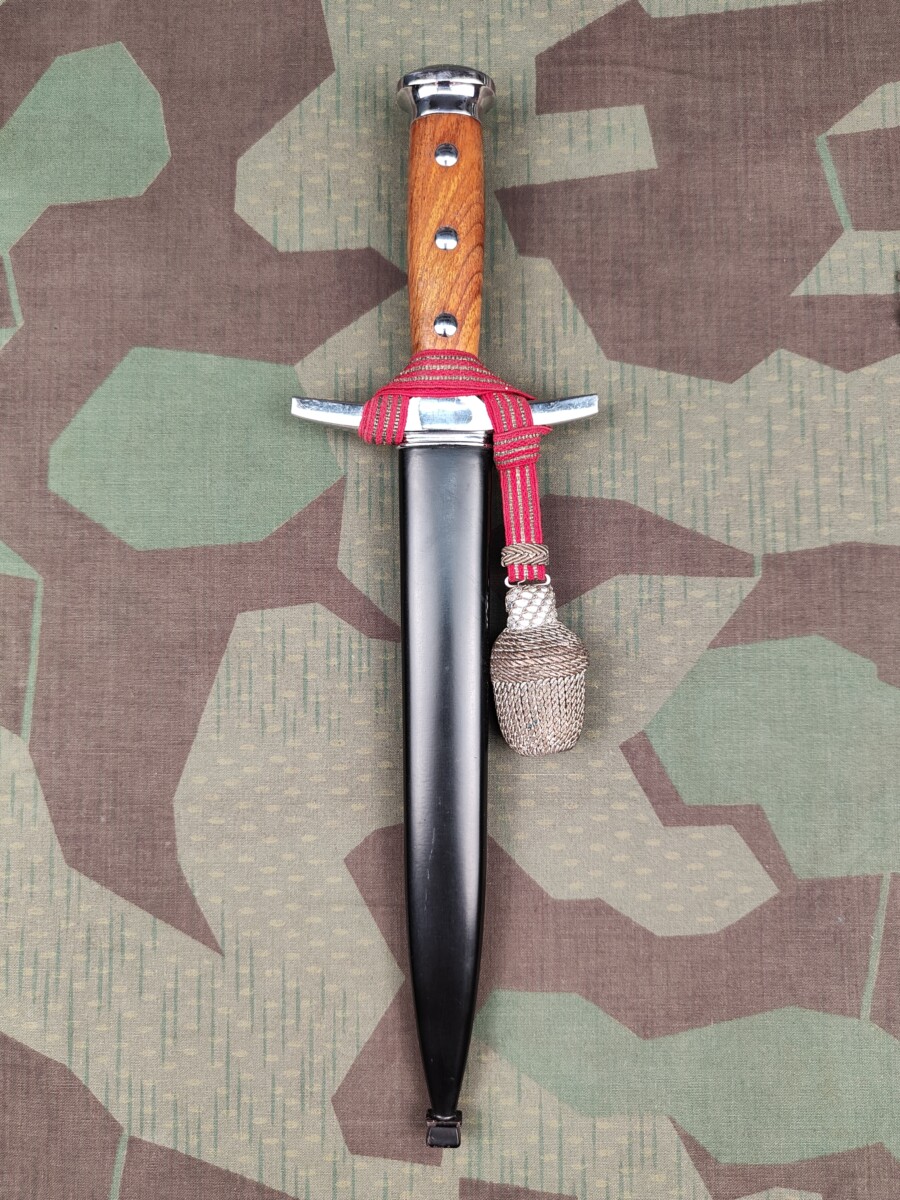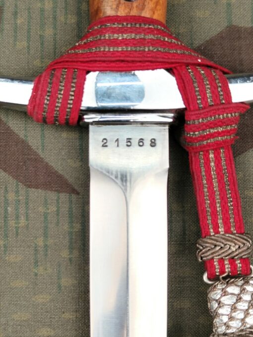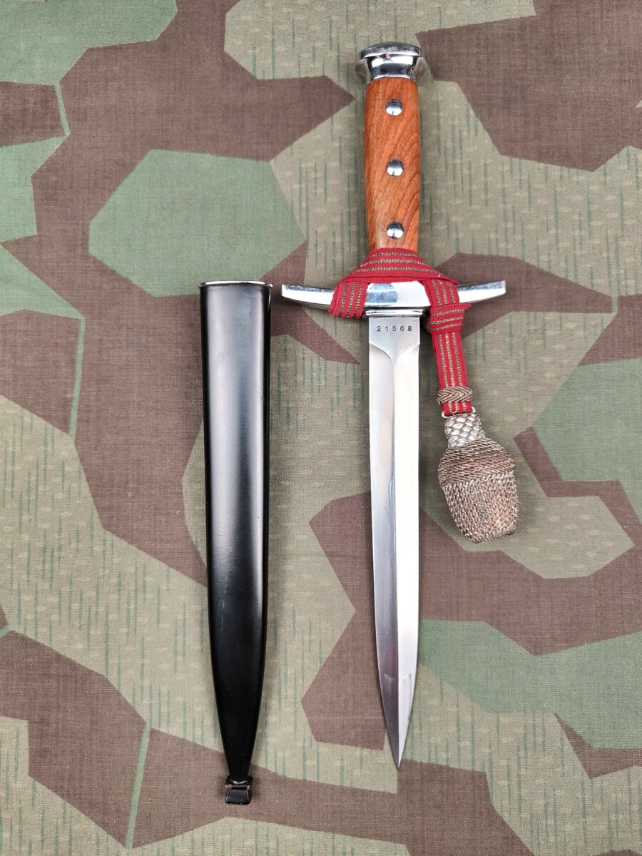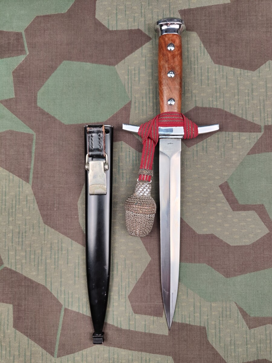 Der Dolch hat eine symmetrische Klinge unter 30 cm. Da es sich um eine Ordonnanzwaffe handelt, wird in der Schweiz eine Ausnahme gemacht und bedarf hierzulande keiner Bewilligung.