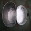 Das Kochgeschirr ist aus verzinntem Eisenblech gefertigt und wurde von der Kavallerie verwendet. Der Soldat hat seine Initialen J E eingeritzt.