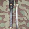 Gebrauchter Zustand gemäss Bilder. Die Scheide ist aufgrund des Alters geschrumpft und die Klinge lässt sich deswegen nicht mehr vollständig in die Scheide führen (5 mm).