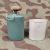 Die Feldflasche wurde aus emailliertem Stahlblech gefertigt und hat ein Fassungsvermögen von 0.5 Liter, der Becher fasste 0.7 Liter. Die Flasche gab es in den Farben Dunkeloliv, Türkis, Oxydrot und Hellblau. Der Stückpreis betrug damals 3.10 CHF.