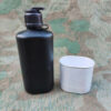 Die Feldflasche ist aus schwarzem Kunststoff gefertigt und fasst 0.9 Liter. Der Feldbecher ist aus Aluminium und hat ein Fassungsvolumen von 0.5 Liter.