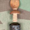 Die Feldflasche ist aus Holz, welches mit Leder umwickelt wurde, gefertigt und fasst ca. 0.65 Liter.