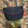 Ein Feldmütze der Infanterie mit «roter Passepoile», welche aus Kostengründen einfach nur aus einer aufgenähten, roten Schnur besteht. Die rote Quaste hatte sich einmal gelöst und der Soldat hat sie auf der falschen Seite wieder angenäht. Die Innenseite ist aus Leder, welches erstaunlich gut erhalten ist.
