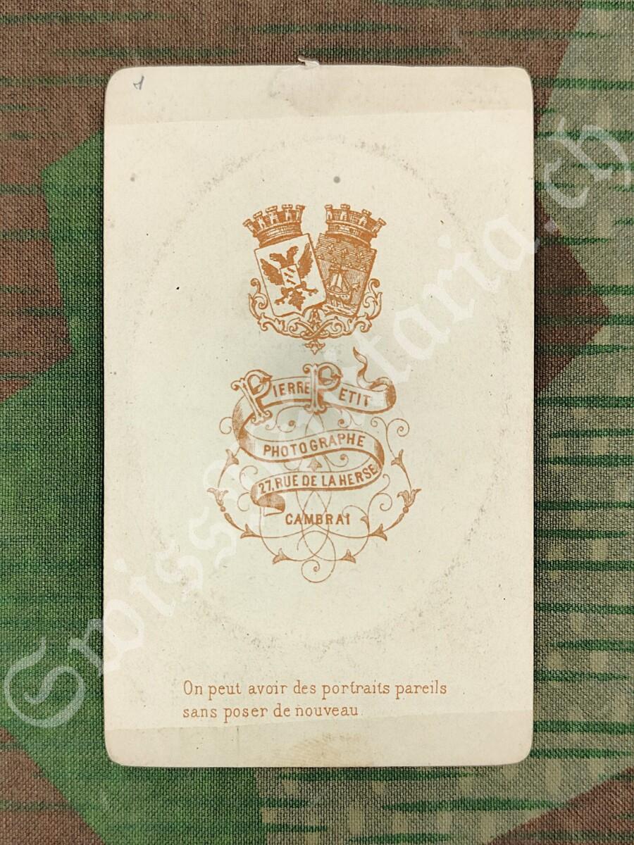 • Rückseite: PIERRE PETIT PHOTOGRAPHE 27. RUE DE LA HERSE CAMBRAI on peut avoir des portraits pareils sans poser de nouveau