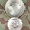 Die Gamelle ist aus verzinntem Blech hergestellt und besteht aus einem Topf mit einem Deckel. Der Topf hat ein Fassungsvolumen von 1.2 Liter. Die Gamelle wurde hinten auf dem Tornister getragen.
