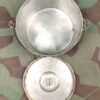 Die Gamelle ist aus verzinntem Blech hergestellt und besteht aus einem Topf mit einem Deckel. Der Topf hat ein Fassungsvolumen von 1.2 Liter. Die Gamelle wurde hinten auf dem Tornister getragen.