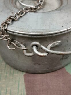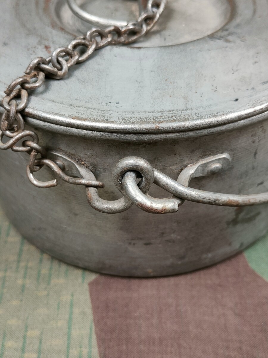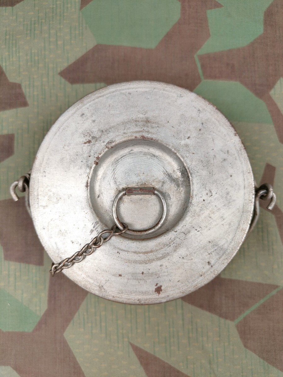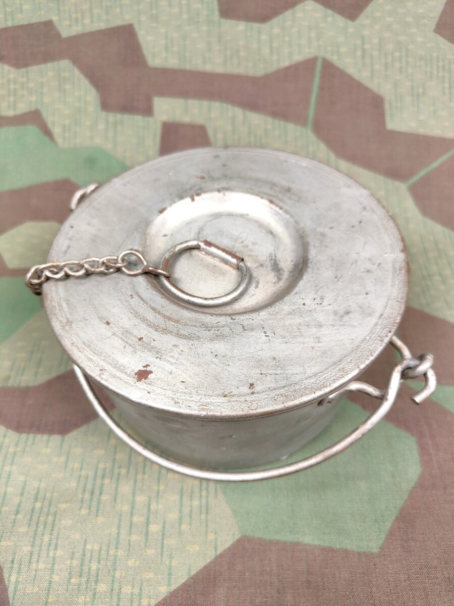 Die Gamelle ist aus verzinntem Blech hergestellt und besteht aus einem Topf mit einem Deckel. Der Topf hat ein Fassungsvolumen von 1.2 Liter. Die Gamelle wurde hinten auf dem Tornister getragen.