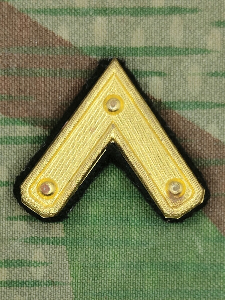 Vergoldeter Winkel aus Blech für gute Leistungen als Richtkanonier. Diese Abzeichen wurden nur von Unteroffizieren und Soldaten am oberen Teil der linken Ärmelplatte getragen.