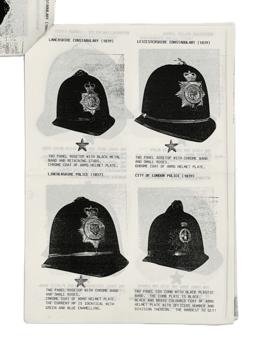 Das Heft beinhaltet eine Zusammenstellung der Britischen Polizeihelme aus dem Buch BRITISH POLICE HELMETS.