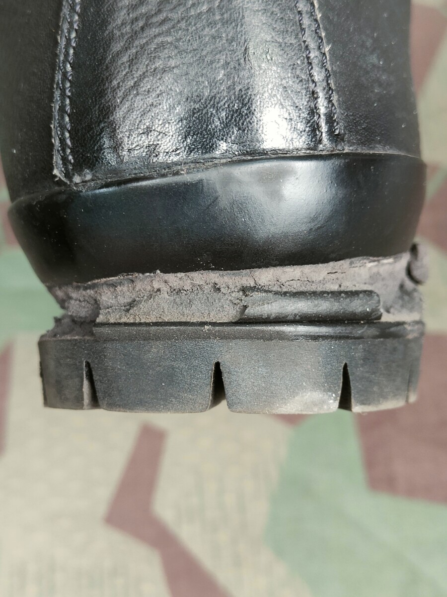 Defekter Zustand gemäss Bilder. Die Sohlen der Kampfstiefel 90 aus der ersten Generation lösen sich ab. Es wurde schlechtes Material verwendet, welches sich mit zunehmendem Alter zersetzt.