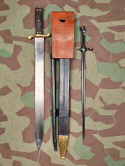 Das Stichbajonett passt auf ein Infanteriegewehr 89, 96, 96/11 oder 1911. Die Scheide ist aus geschwärztem Leder.