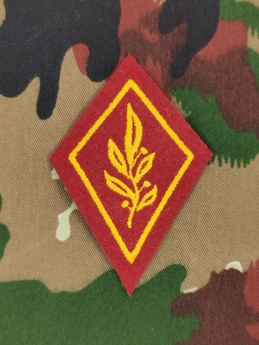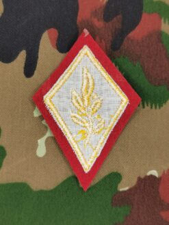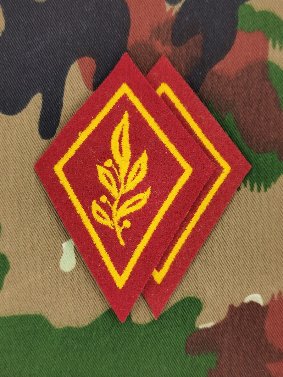 Dies ist eine Reproduktion eines Kragenspiegels für Heereseinheitskommandanten der Ord. 1949. Die Grundfarbe entspricht der Truppengattung, von welcher der jeweilige Kommandant hervorgegangen ist.