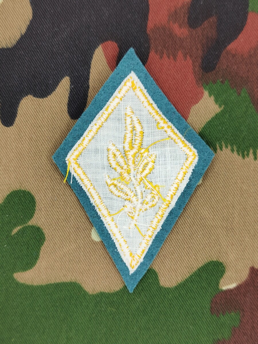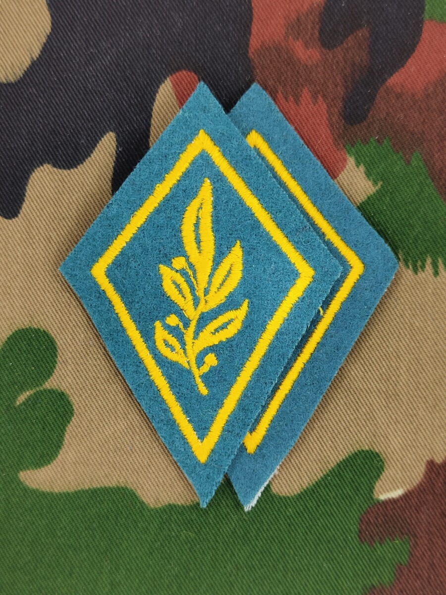 Dies ist eine Reproduktion eines Kragenspiegels für Heereseinheitskommandanten der Ord. 1949. Die Grundfarbe entspricht der Truppengattung, von welcher der jeweilige Kommandant hervorgegangen ist.