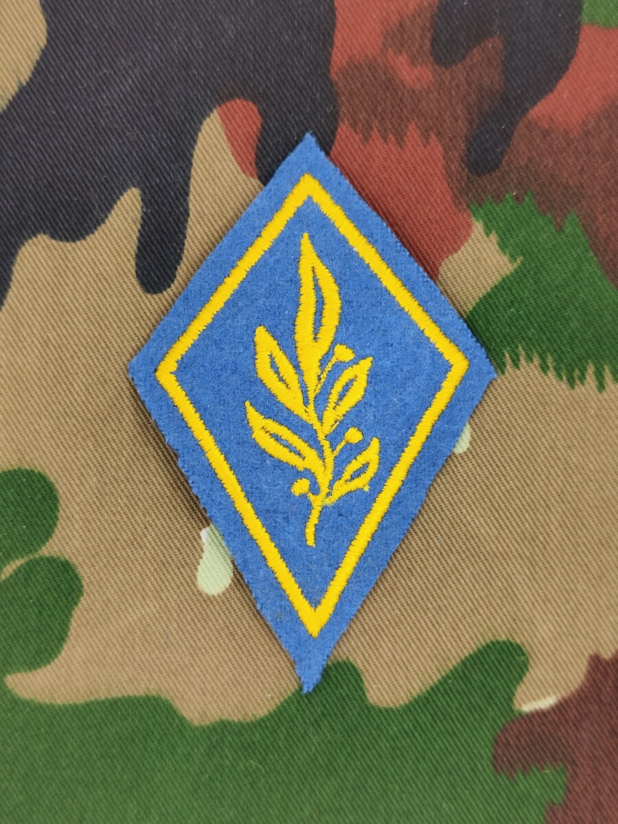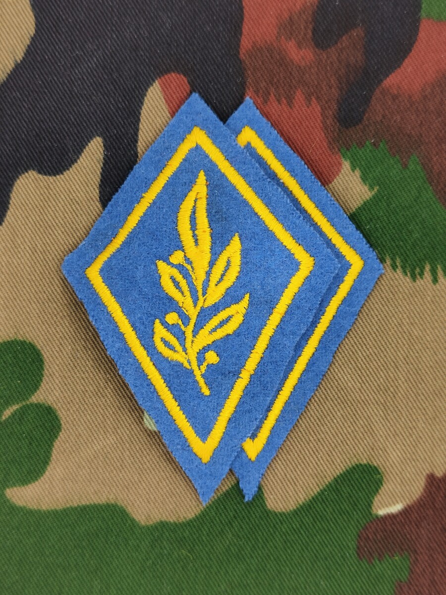 Dies ist eine Reproduktion eines Kragenspiegels für Heereseinheitskommandanten der Ord. 1949. Die Grundfarbe entspricht der Truppengattung, von welcher der jeweilige Kommandant hervorgegangen ist.