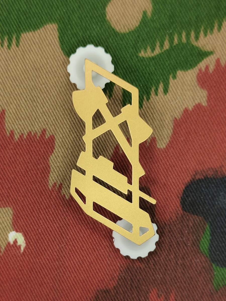 Schlagwörter: Brückenlegerpanzersoldat, Funktionsabzeichen, Genietruppen, Kragenspiegel, Metall, Ordonnanz 1990, Panzerbesatzung / Schützenpanzerbesatzung, Panzersappeur, Panzertruppen