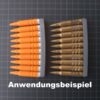 Die Ladestreifen sind aus Kunststoff gefertigt und fassen 10 Patronen GP 90 im Kaliber 5.56 × 45 mm. Auf dem letzten Bild ist ein Anwendungsbeispiel zu sehen.