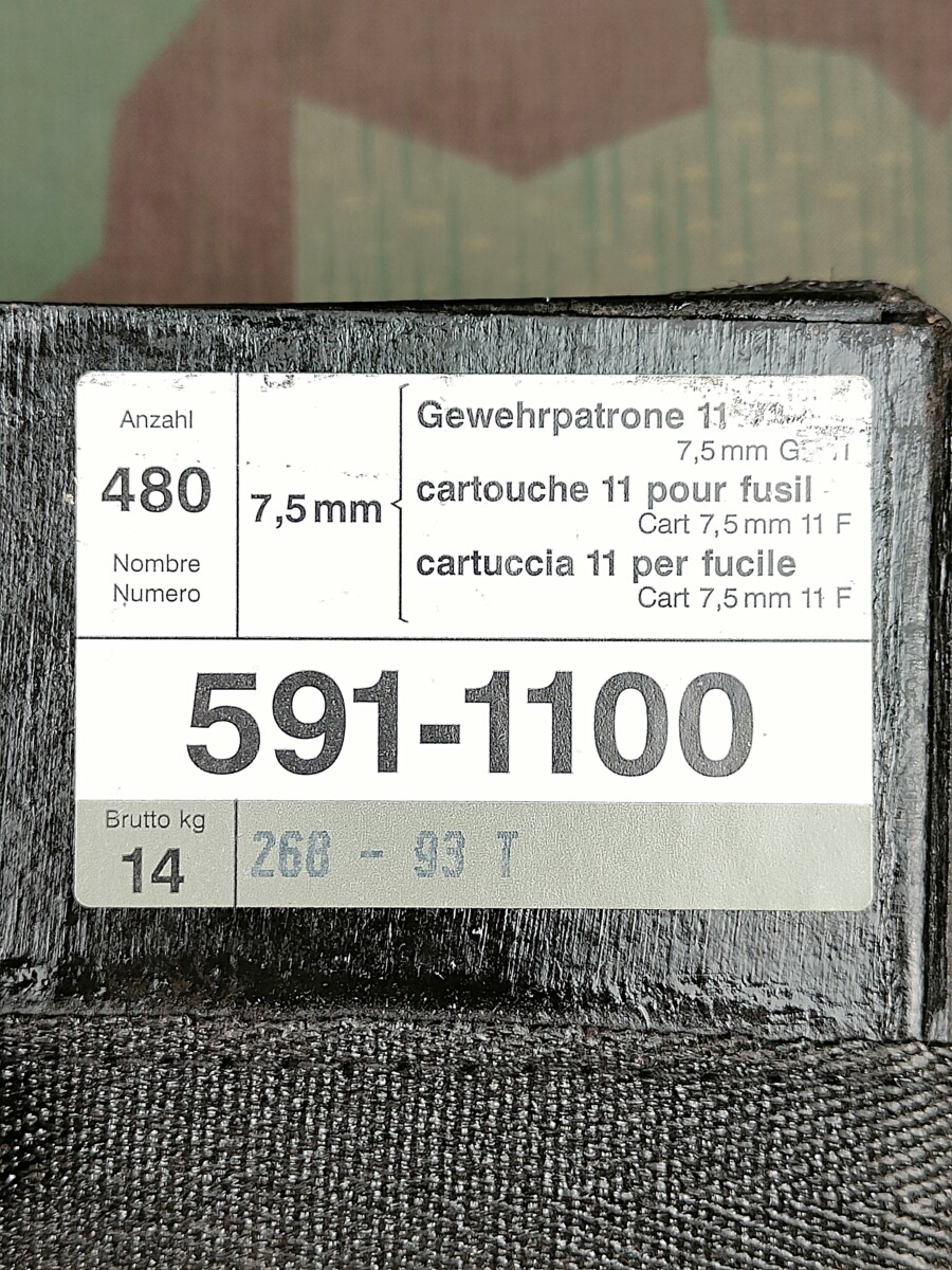 Munitionsschachtel 7.5 mm Gewehrpatrone 11, 480 Patronen, 1993