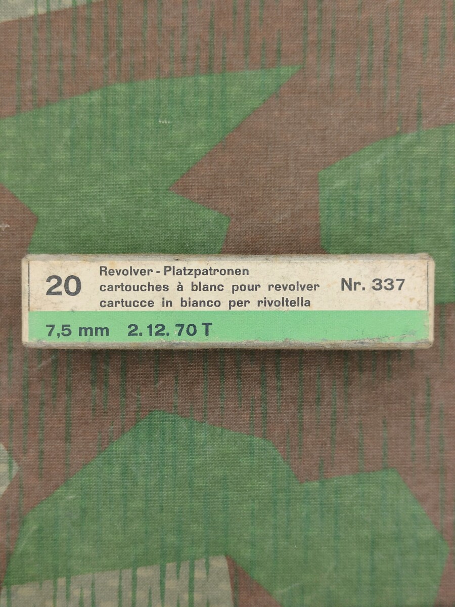 Aufschrift: 20 Revolver-Platzpatronen 7,5 mm