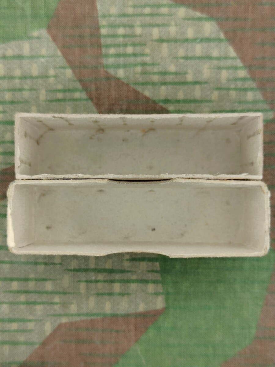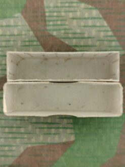 Die Munitionsschachtel ist leer und hat eine 2-sprachige Aufschrift.