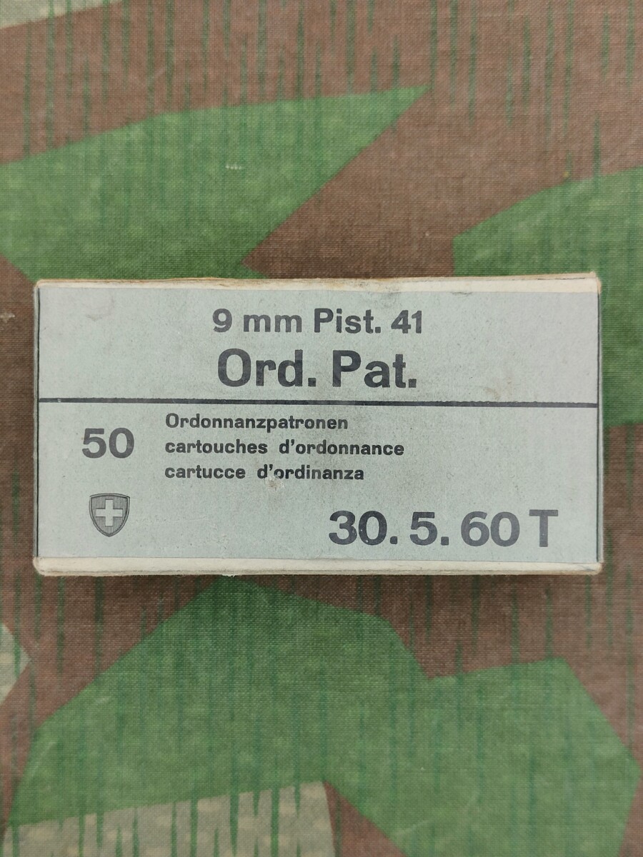 Aufschrift: 9 mm Pist. 41 Ord. Pat. 50 Ordonnanzpatronen