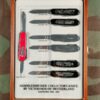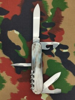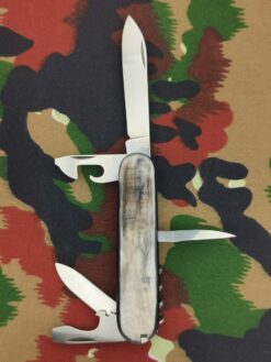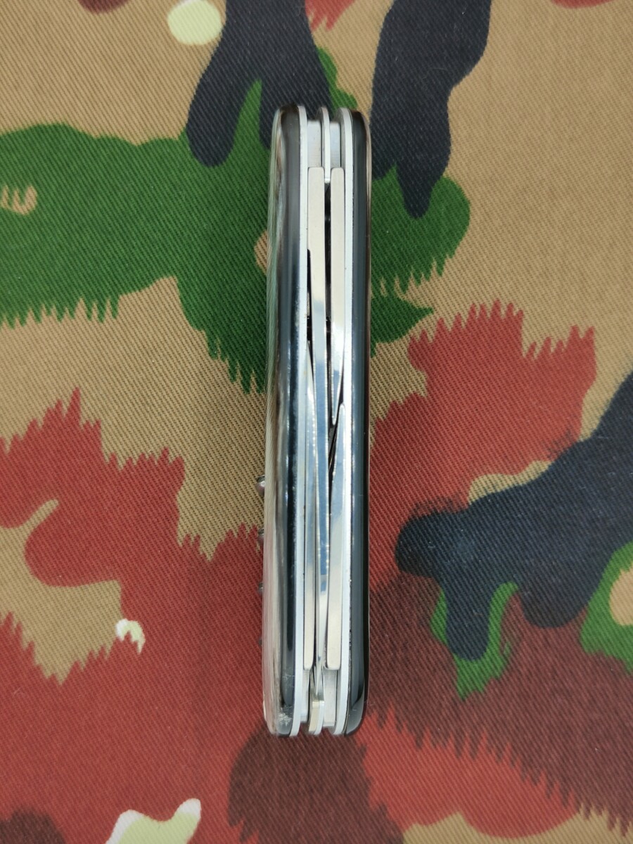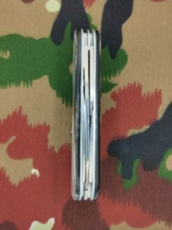 Funktionen: Dosenöffner, Drahtabisolierer, Kapselheber, Klinge gross und klein, Korkenzieher, Pinzette, Ring, Schraubenzieher 3 und 6 mm, Stech-Bohr-Nähahle, Zahnstocher
