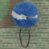 Der Pompon aus Wolle misst ca. 38 mm im Durchmesser und wird oberhalb des Deckels, mittels der aus 1.2 mm dickem Messing hergestellten Drahtschlaufe, in die Lederlasche eingesetzt. Durch das Einsetzten der Ganse oder Kokarde, wird der Pompon am Tschako fixiert.