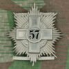 Der Pompon aus Wolle misst ca. 38 mm im Durchmesser und wird oberhalb des Deckels, mittels der aus 1.2 mm dickem Messing hergestellten Drahtschlaufe, in die Lederlasche eingesetzt. Durch das Einsetzten der Ganse oder Kokarde, wird der Pompon am Tschako fixiert.