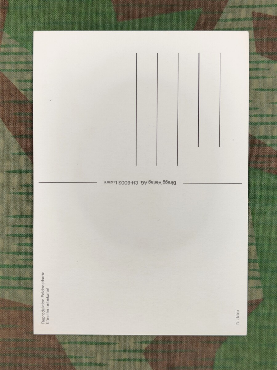 - Rückseite: Reproduktion Feldpostkarte Künstler unbekannt; Nr. 555; Biregg Verlag AG, CH-6003 Luzern