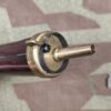 Eine schöne Pulverflasche aus Kupferblech mit Relief für eine Cal. 36 Waffe. Es handelt sich hierbei um eine Reproduktion.