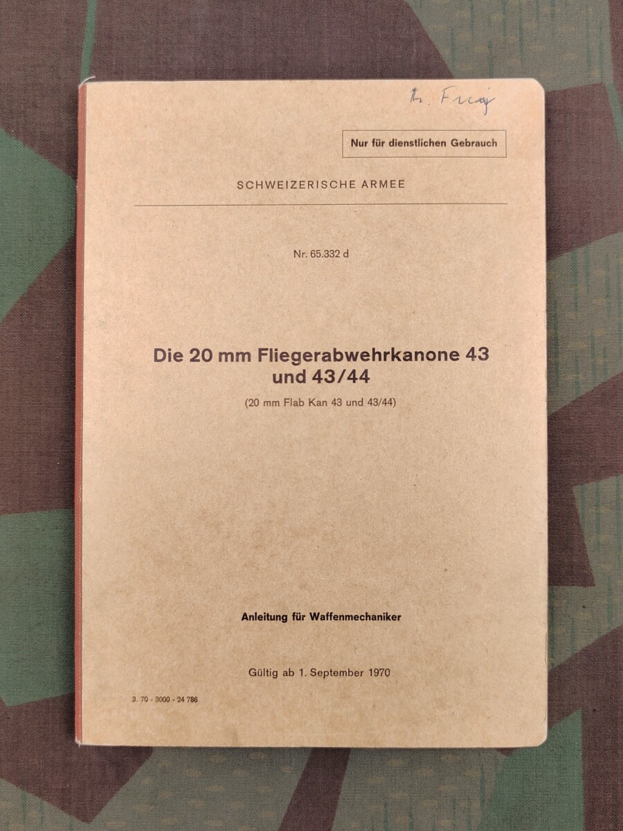 Reglement 65.332 d, Die 20 mm Fliegerabwehrkanone 43 und 43/44 (20 mm Flab Kann 43 und 43/44), 1970