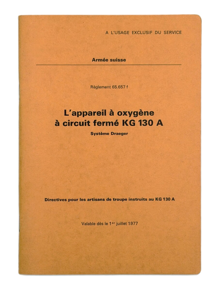 Règlement 65.657 f, L’appareil à oxygène à circuit fermé KG 130 A Système Draeger, 1977