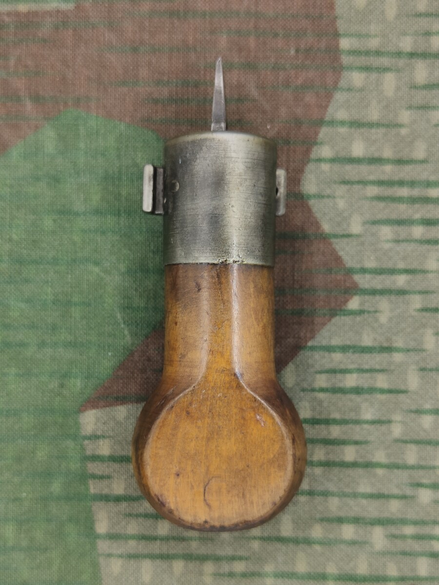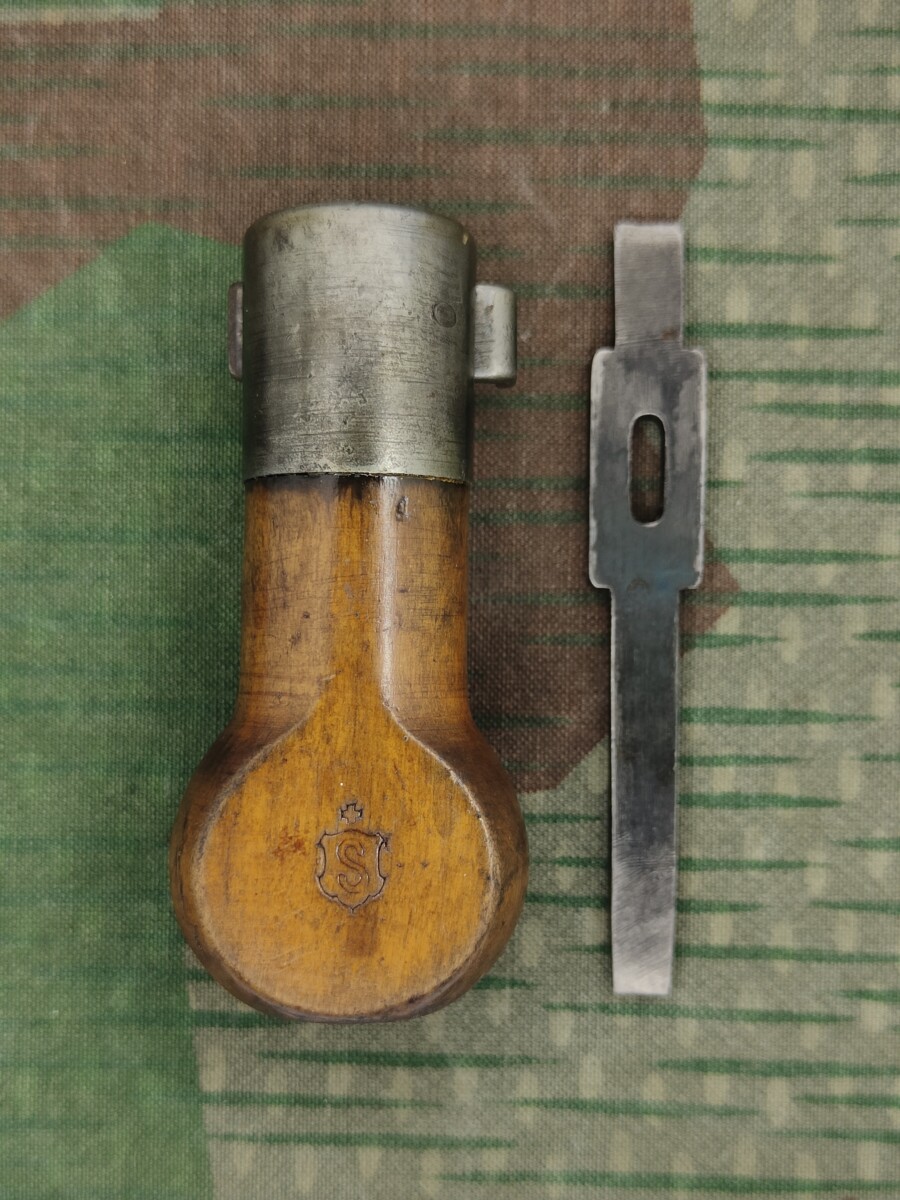 Der Schraubenzieher ist für Vetterli Repetiergewehre. Der Schraubenziehereinsatz hat eine breite und eine schmale Spitze.
