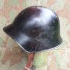 Das vorliegende Exemplar ist ein Mod. 1918 Stahlhelm mit Innenfutter nach Mod. 1963. Der Helm wurde aus alten Armeebeständen für die Feuerwehren wieder verwendet und erhielt eine schwarze Lackierung und ein neues Innenfutter.