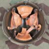 Der Helm wurde zwecks Einführung der Grundtrageeinheit 90 mit einer D-Schnalle modifiziert, um ihn an der Grundtrageeinheit einhängen zu können. Speziell an diesem Helm ist die glatte Oberfläche, welche sehr selten ist.