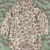 Die Jacke hat zwei Tarnmuster. Im Winter kann die weisse Innenseite gegen aussen gewendet werden.
