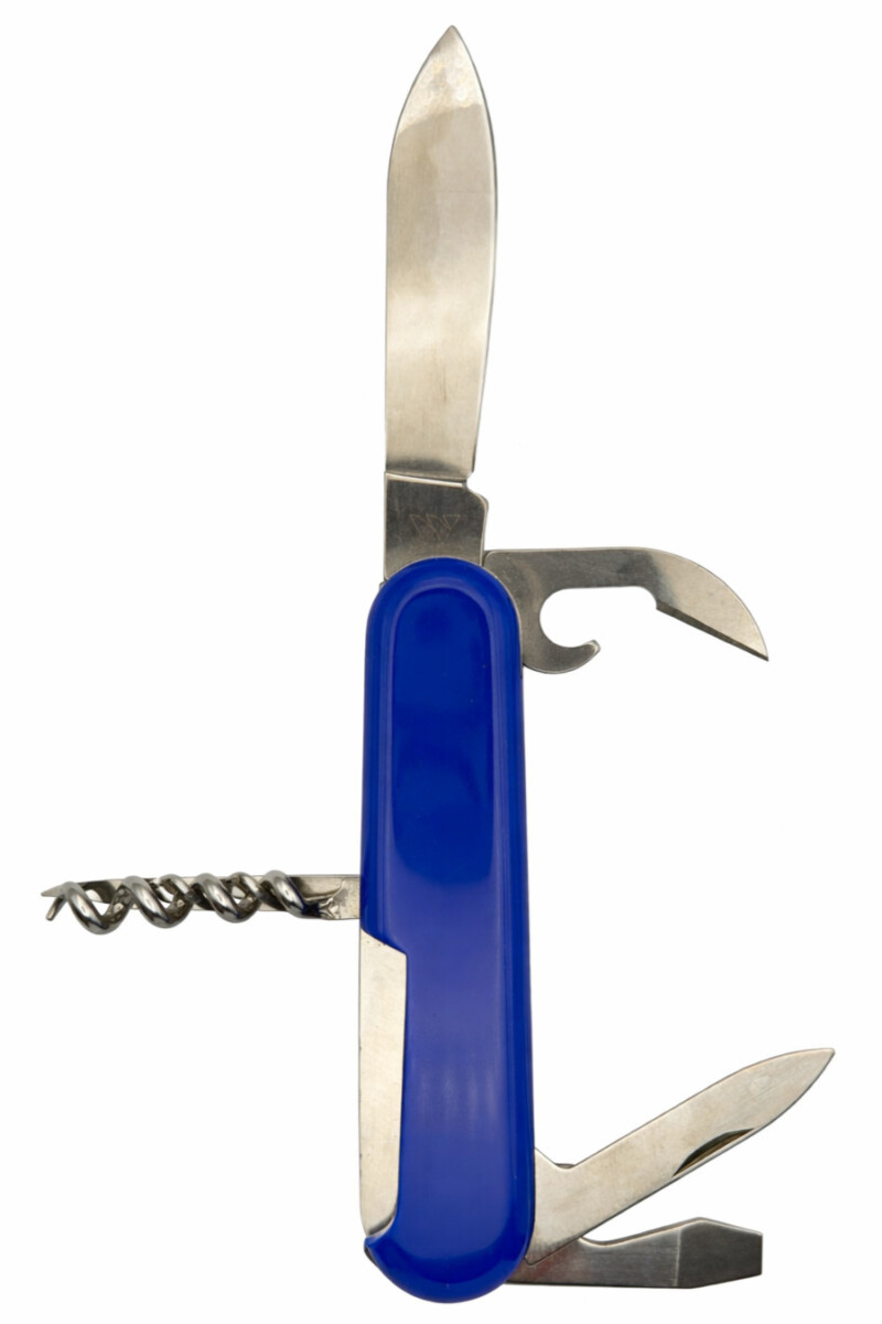 Funktionen: Dosenöffner, Drahtabisolierer, Flaschenöffner, Kapselheber, Klinge gross, Korkenzieher, Nagelfeile / Nagelreiniger, Schraubenzieher 5 mm, Stech-Bohr-Nähahle