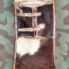 Bei diesem Tornister handelt es sich um ein schmales, langes Modell der Ordonnanz 1898. Die frühen Exemplare hatten ein Patronenfach für die Patronenschlaufen. Nach Abschaffung der besagten Schlaufen wurden die Tornister umgebaut. Dazu wurde das Fasch innen durchbrochen und die seitliche Öffnung verschlossen.