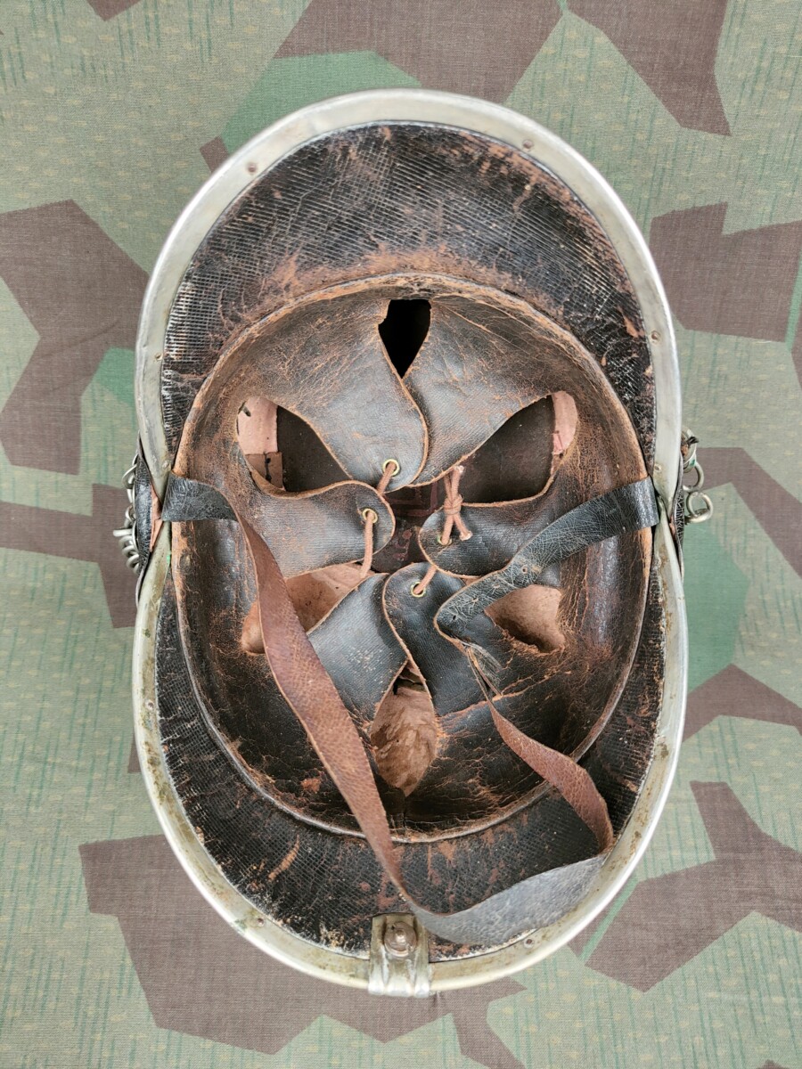 Gebrauchter Zustand gemäss Bilder. Das Sturmband ist beschädigt, es fehlt ein Teil des Lederbesatzes.