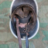 Gebrauchter Zustand gemäss Bilder. Das Innenfutter hat diverse Beschädigungen und der Lederbesatz des Sturmbandes (Kettenglieder) fehlt. Das Kinnband ist ganz.