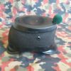 Dem Alter entsprechend guter Zustand gemäss Bilder. Das Kinnband fehlt und das Emblem ist gebrochen und müsste gelötet werden.