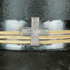 Ein Tschako eines Sanität Hauptmanns der im Lazarett-Stab eingeteilt ist. Speziell an diesem Exemplar ist die die Offiziers-Kokarde. Diese hat statt dem weissem ein versilbertes Kreuz.
