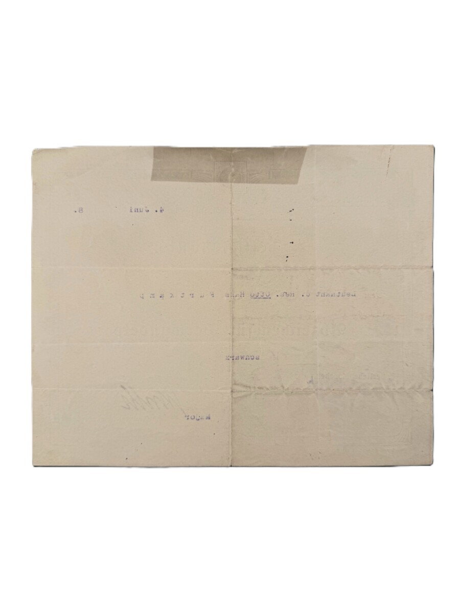 Diese Urkunde gehört zum Nachlass von Leutnant Otto Hans Furtkamp.