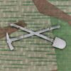 Das Emblem zeigt ein gekreuzter Pickel mit Schaufel und wurde mit der Ordonnanz 1878 eingeführt.